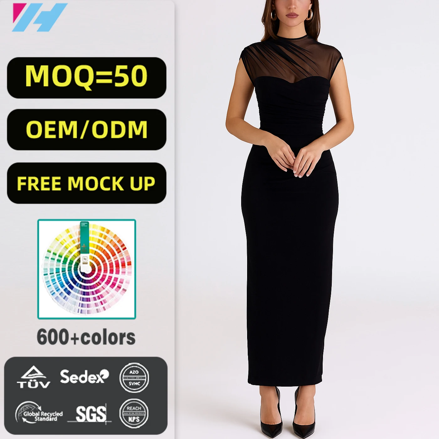 Custom Wholesale Sexy Elegant Fashion Mesh Ladies Women Bodycon Party Evening Maxi Dress